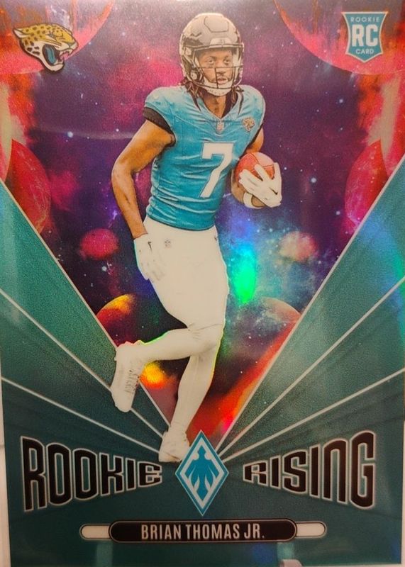 The Brian Thomas Jr. 2024 Phoenix #RR-BTJ Rookie Rising - Teal /40 card in Raw condition has not changed in price in the last 30 days and was last sold for $23.00 .