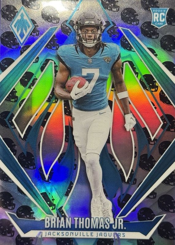 The Brian Thomas Jr. 2024 Phoenix #164 Team Helmet /399 Rookie card in Raw condition has not changed in price in the last 30 days and was last sold for $4.00 .