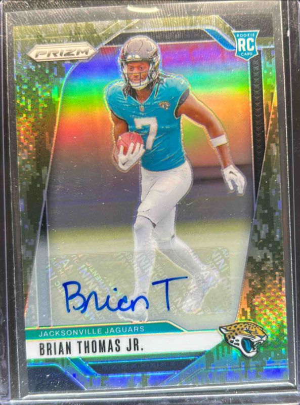 The Brian Thomas Jr. 2024 Prizm #314 Base Autographs - Camo /25 Rookie card is 1 of 146 Brian Thomas Jr.'s card variations in the 2024 Prizm set being tracked by Sports Card Investor, including Base, Choice Blue Yellow Green, Choice Silver, Disco, and Green.