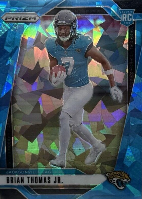 The Brian Thomas Jr. 2024 Prizm #314 Blue Ice /99 Rookie card in Raw condition has not changed in price in the last 30 days and was last sold for $118.90 .