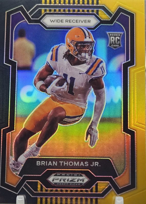 The Brian Thomas Jr. 2024 Prizm Draft Picks #118 Black & Gold /5 Rookie card in Raw condition has not changed in price in the last 30 days and was last sold for $249.99 .