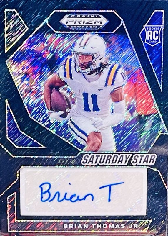 The Brian Thomas Jr. 2024 Prizm Draft Picks #118 Black Shimmer /1 Rookie card in Raw condition has not changed in price in the last 30 days and was last sold for $510.00 .