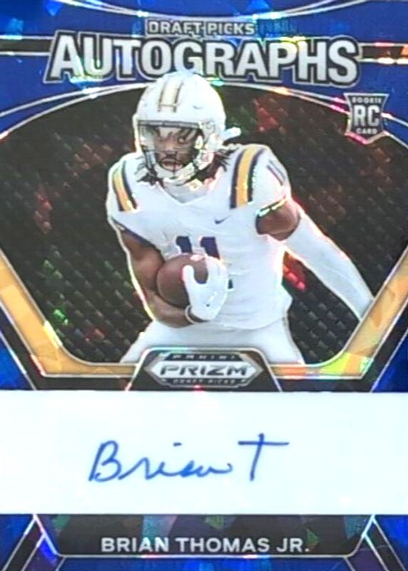2024 Prizm Draft Picks Brian Thomas Jr RC Blue Cracked Ice Auto /75 LSU #DPA-BTJ