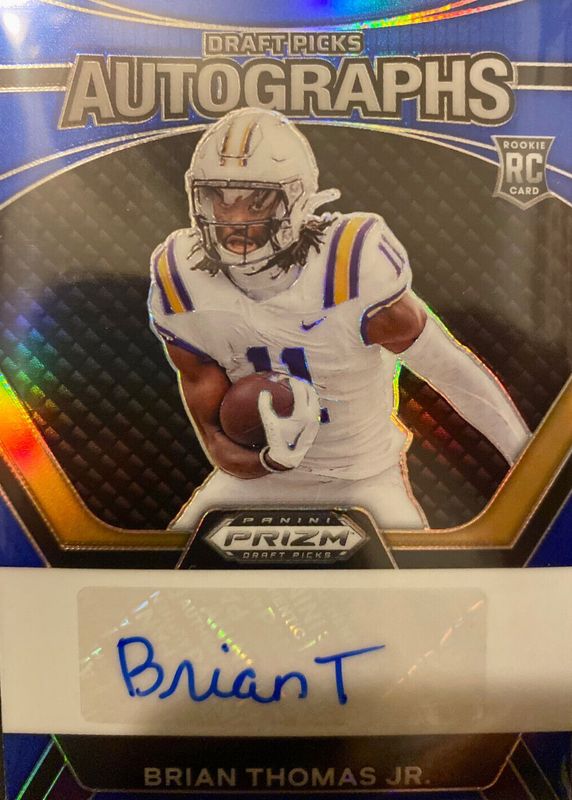The Brian Thomas Jr. 2024 Prizm Draft Picks #DPA-BTJ Draft Picks Autographs Rookie card in Raw condition has moved up $2.67 (+19.3%) in the last 30 days and was last sold for $16.50 .