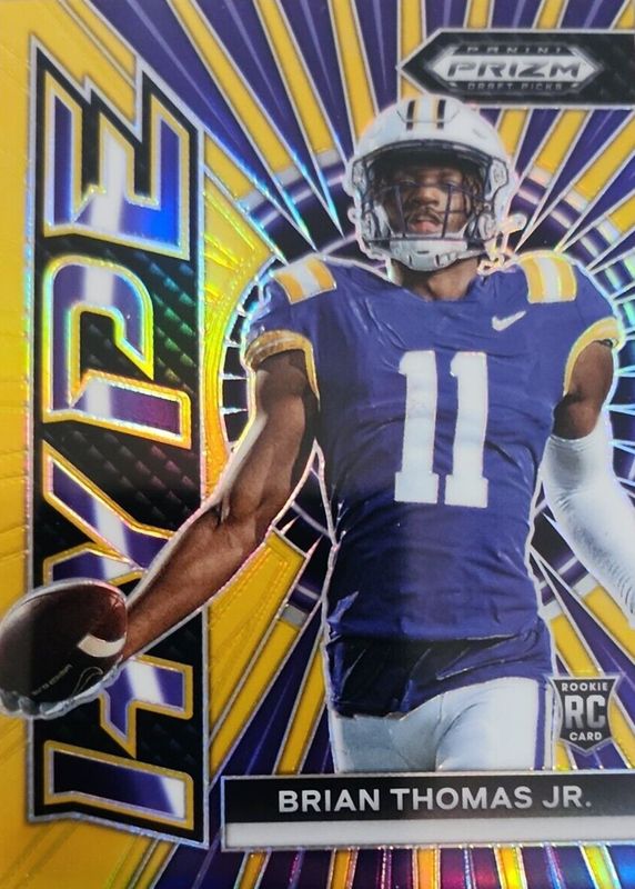 The Brian Thomas Jr. 2024 Prizm Draft Picks #HP-BTJ Hype - Gold /10 Rookie card in Raw condition has not changed in price in the last 30 days and was last sold for $100.00 .