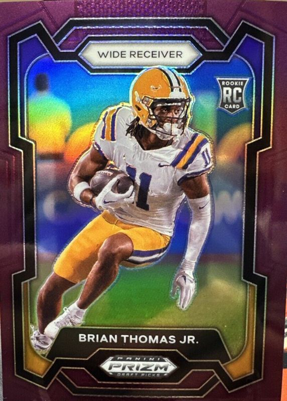 The Brian Thomas Jr. 2024 Prizm Draft Picks #118 Purple /75 Rookie card in Raw condition has not changed in price in the last 30 days and was last sold for $3.25 .