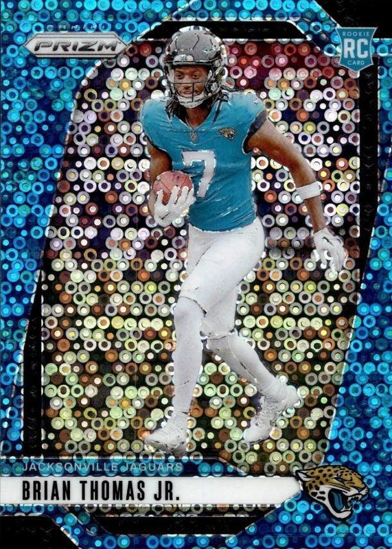 This card is 1 of 146 Brian Thomas Jr.'s card variations in the 2024 Prizm set being tracked by Sports Card Investor, including Base, Choice Blue Yellow Green, Choice Silver, Disco, and Green.