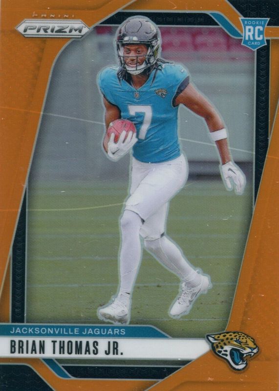 The Brian Thomas Jr. 2024 Prizm #314 Orange /249 Rookie card in Raw condition has not changed in price in the last 30 days and was last sold for $4.00 .