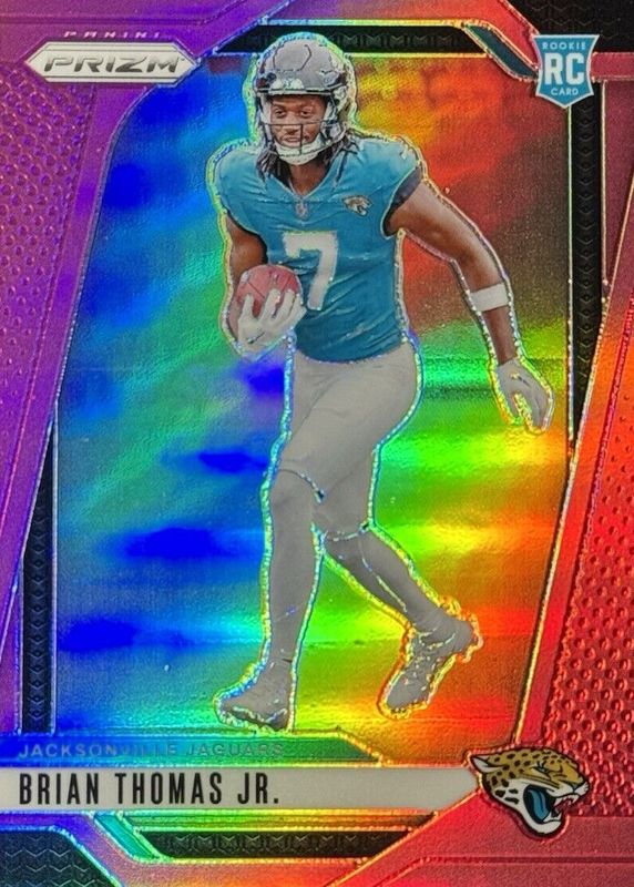 The Brian Thomas Jr. 2024 Prizm #314 Pink Rookie card in Raw condition has moved up $0.46 (+35.7%) in the last 30 days and was last sold for $1.75 .