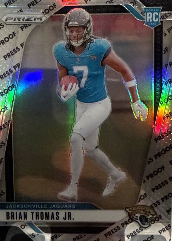 The Brian Thomas Jr. 2024 Prizm #314 Press Proof /(SSP) Rookie card in Raw condition has not changed in price in the last 30 days and was last sold for $250.00 .