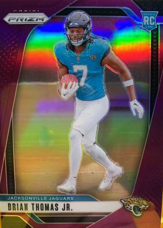 The Brian Thomas Jr. 2024 Prizm #314 Purple /125 Rookie card in Raw condition has moved up $4.49 (+21.9%) in the last 30 days and was last sold for $24.99 .