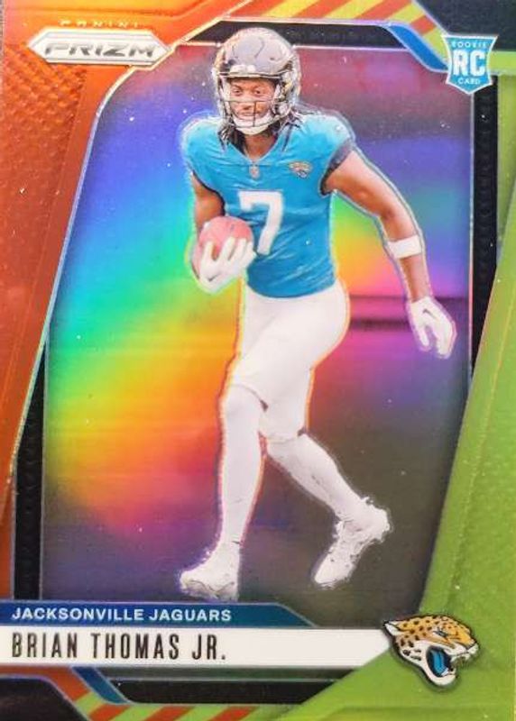 The Brian Thomas Jr. 2024 Prizm #314 Red & Yellow /44 Rookie card in Raw condition has not changed in price in the last 30 days and was last sold for $35.00 .