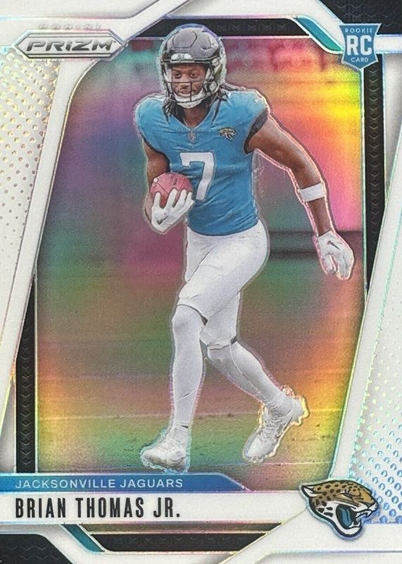 The Brian Thomas Jr. 2024 Prizm #314 White /35 Rookie card in Raw condition has not changed in price in the last 30 days and was last sold for $152.50 .