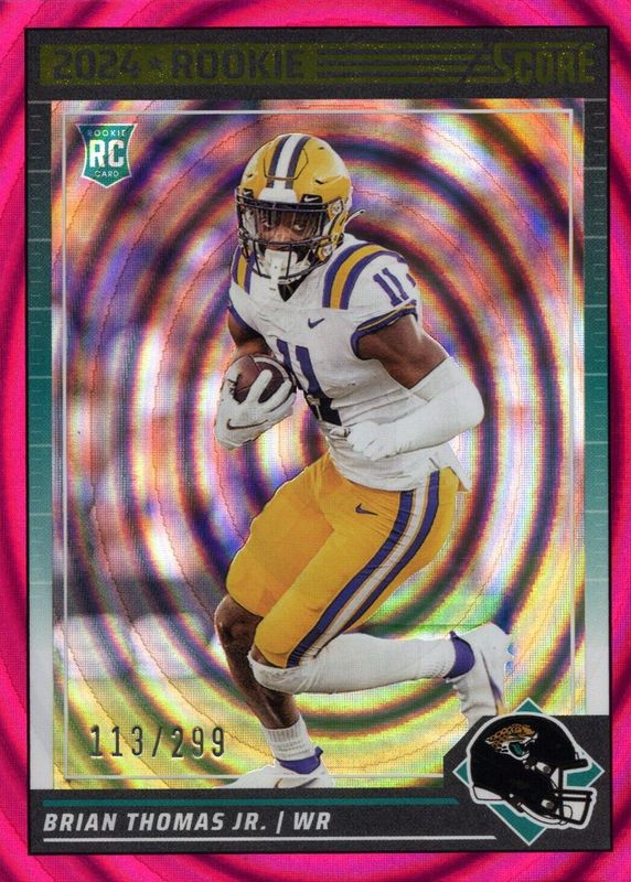 This card is 1 of 26 Brian Thomas Jr.'s card variations in the 2024 Score set being tracked by Sports Card Investor, including Base, Gold, Green, Orange, and Purple.