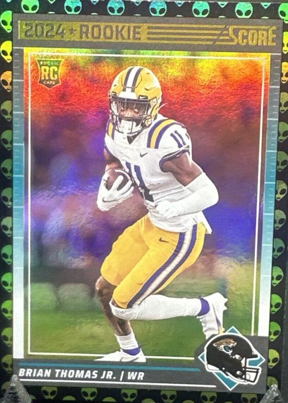 The Brian Thomas Jr. 2024 Score #319 Extraterrestrial /(SSP) Rookie card in Raw condition has not changed in price in the last 30 days and was last sold for $69.99 .