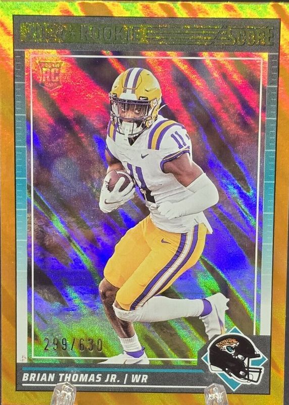 This card is 1 of 26 Brian Thomas Jr.'s card variations in the 2024 Score set being tracked by Sports Card Investor, including Base, Gold, Green, Orange, and Purple.