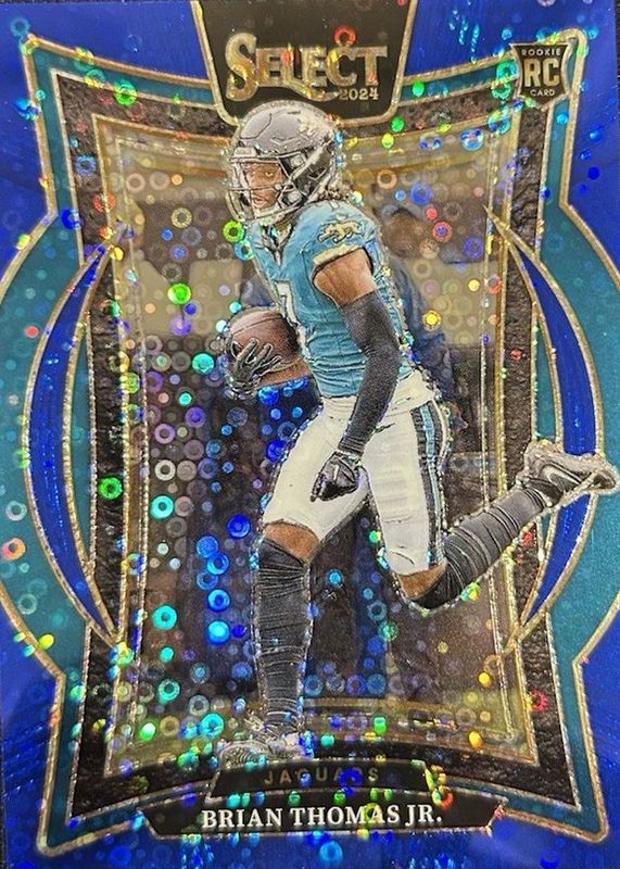 This card is 1 of 153 Brian Thomas Jr.'s card variations in the 2024 Select set being tracked by Sports Card Investor, including Concourse, Field Level, Premier Level, Concourse Black & Blue Shock, and Concourse Black & Gold Shock.