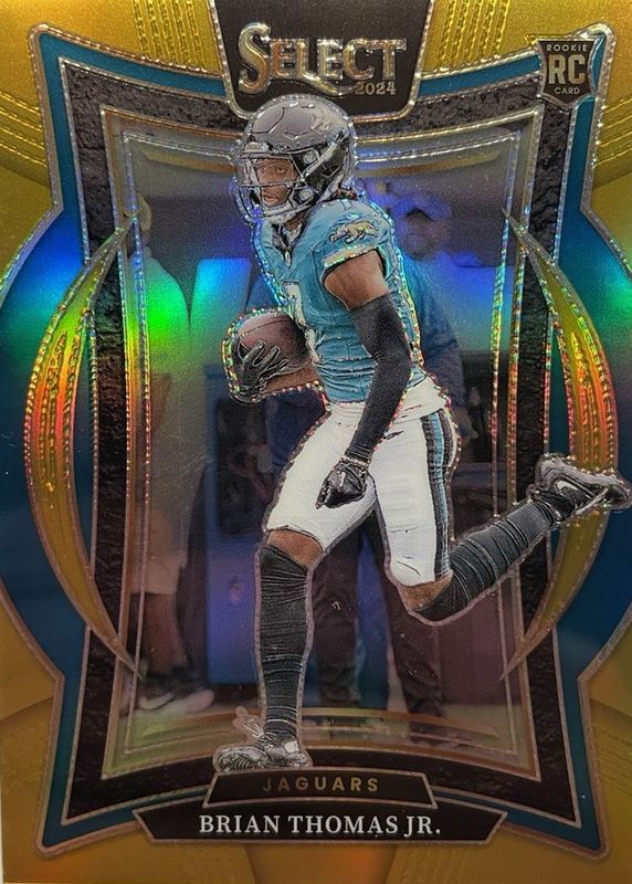 The Brian Thomas Jr. 2024 Select #91 Concourse Gold /10 Rookie card in Raw condition has not changed in price in the last 30 days and was last sold for $450.00 .