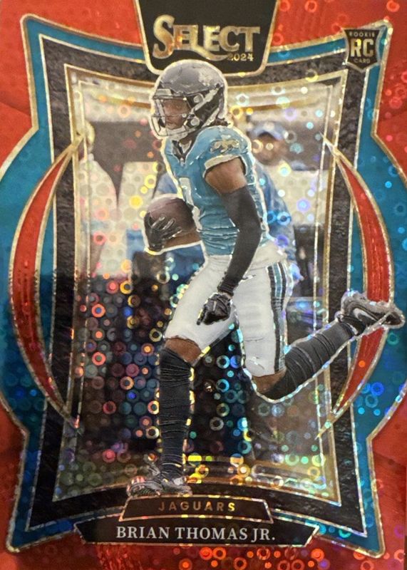 The Brian Thomas Jr. 2024 Select #91 Concourse Red Disco /49 Rookie card in Raw condition has not changed in price in the last 30 days and was last sold for $80.00 .