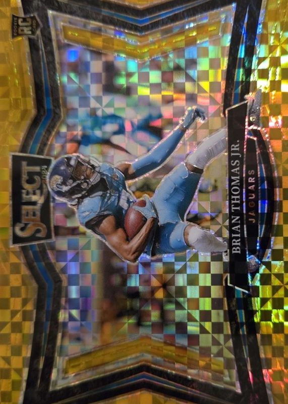 The Brian Thomas Jr. 2024 Select #412 Field Level Gold /10 Rookie card in Raw condition has not changed in price in the last 30 days and was last sold for $152.50 .