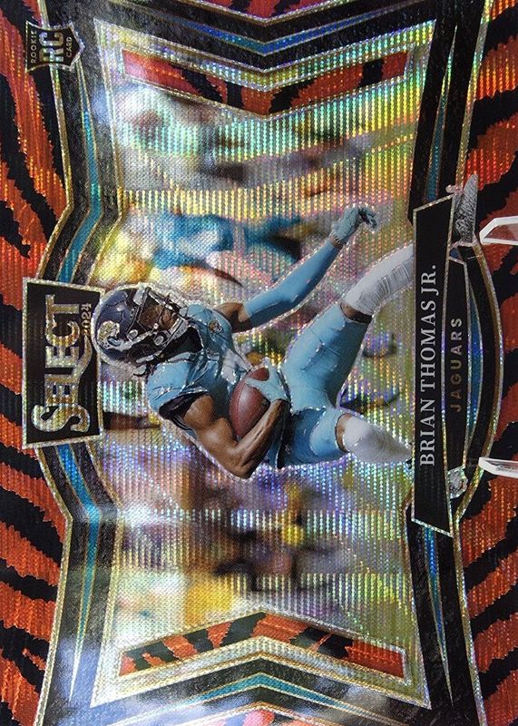 The Brian Thomas Jr. 2024 Select #412 Field Level Tiger /(SSP) Rookie card in Raw condition has not changed in price in the last 30 days and was last sold for $565.00 .