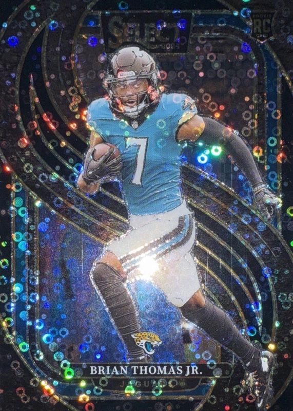 This card is 1 of 153 Brian Thomas Jr.'s card variations in the 2024 Select set being tracked by Sports Card Investor, including Concourse, Field Level, Premier Level, Concourse Black & Blue Shock, and Concourse Black & Gold Shock.