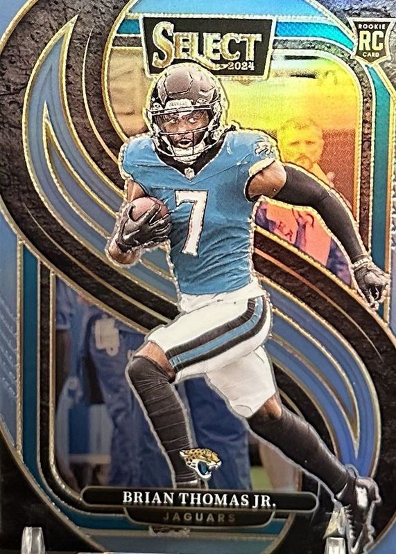The Brian Thomas Jr. 2024 Select #143 Premier Level Light Blue /99 Rookie card in Raw condition has not changed in price in the last 30 days and was last sold for $13.50 .
