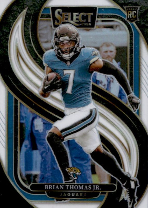 This card is 1 of 153 Brian Thomas Jr.'s card variations in the 2024 Select set being tracked by Sports Card Investor, including Concourse, Field Level, Premier Level, Concourse Black & Blue Shock, and Concourse Black & Gold Shock.