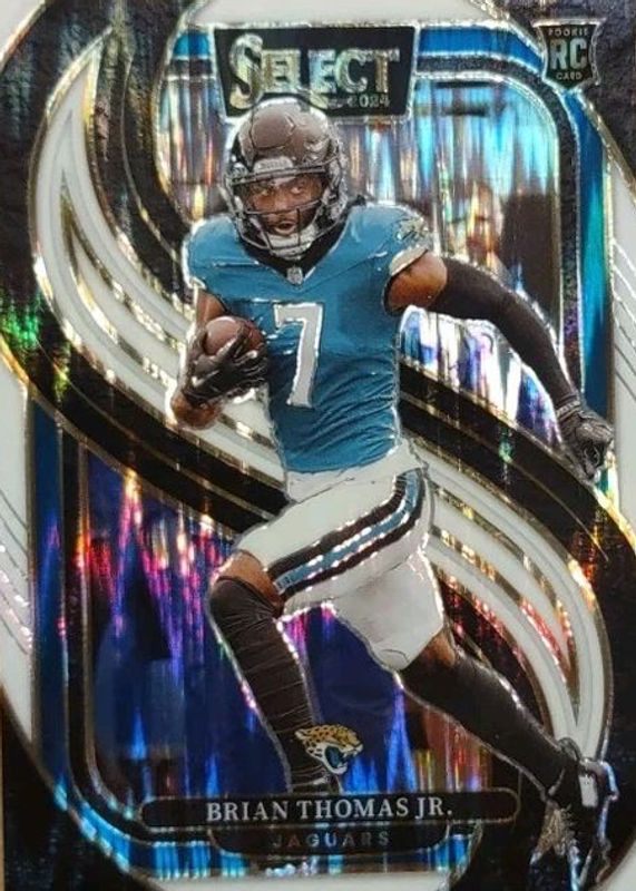 This card is 1 of 153 Brian Thomas Jr.'s card variations in the 2024 Select set being tracked by Sports Card Investor, including Concourse, Field Level, Premier Level, Concourse Black & Blue Shock, and Concourse Black & Gold Shock.