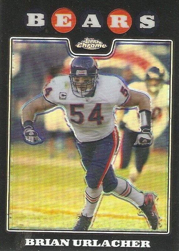 The Brian Urlacher 2008 Topps Chrome #TC115 Refractor card in Raw condition has moved up $4.20 (+235%) in the last 30 days and was last sold for $5.99 .