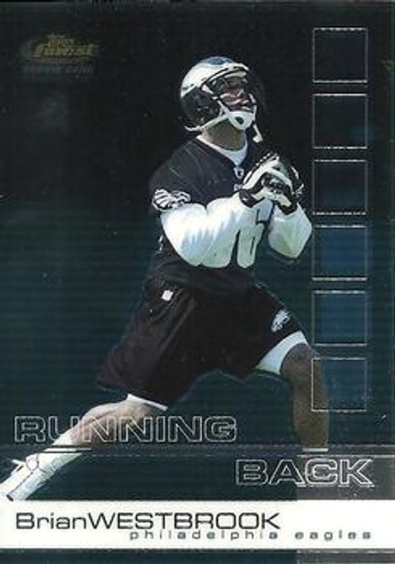 The Brian Westbrook 2002 Topps Finest #102 Base Rookie card is 1 of 4 Brian Westbrook's card variations in the 2002 Topps Finest set being tracked by Sports Card Investor, including Refractor /250, Gold Refractor /25, and X-Fractor /20.