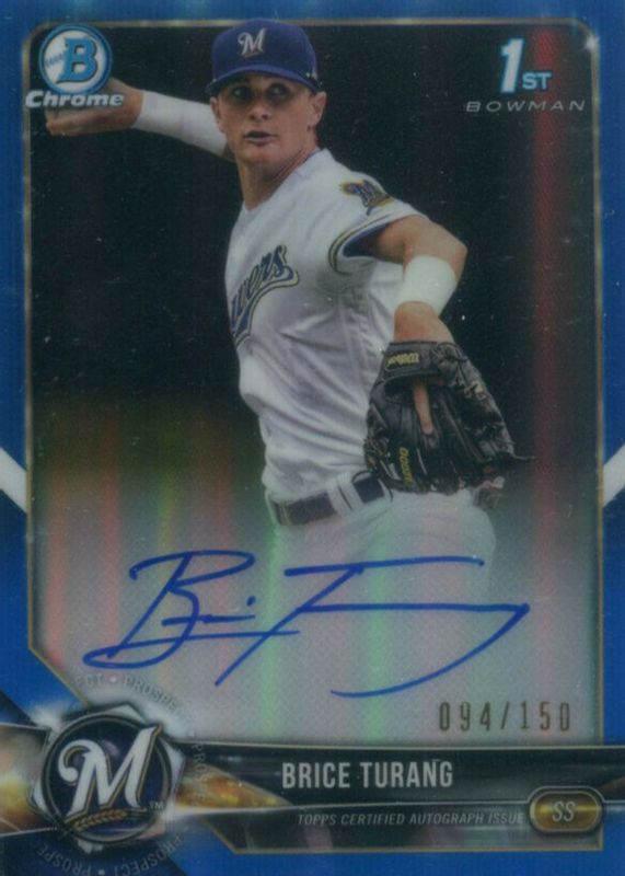 2018 (1ST) Bowman Chrome Draft BRICE TURANG Auto BLUE REFRACTOR Rookie RC #D/150