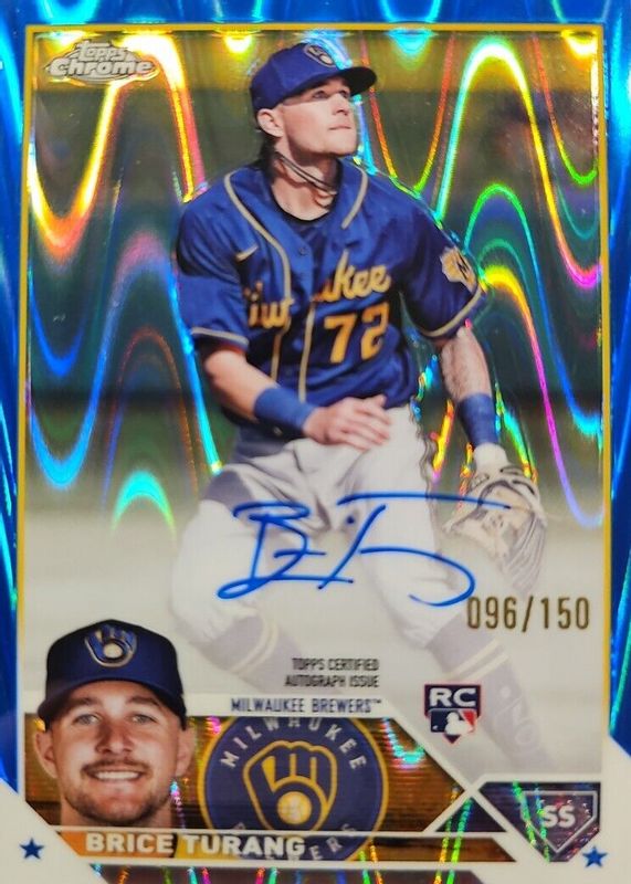 BRICE TURANG 2023 TOPPS CHROME ROOKIE BLUE RAYWAVE BREWERS RC AUTO /150 Q3791