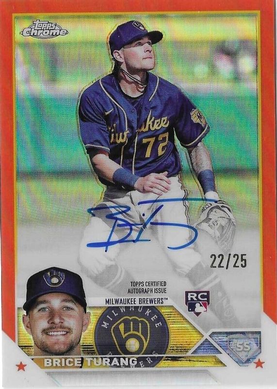 Auctions Ending Soon for Brice Turang 2023 Topps Chrome #RA-BT Rookie Autographs - Orange Refractor /25 RAW