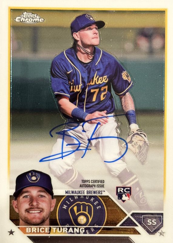 2023 Topps Chrome Baseball Brice Turang Rookie Auto Brewers SP RA-BT On Card