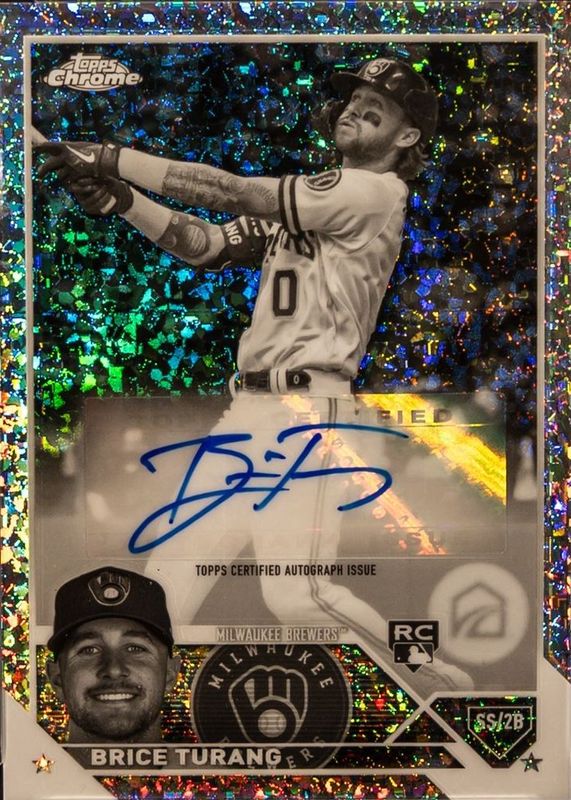 Auctions Ending Soon for Brice Turang 2023 Topps Chrome Update #AC-BTU Autographs - Black & White Mini-Diamond Refractor Rookie RAW