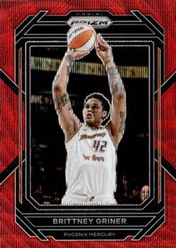 The Brittney Griner 2023 Prizm WNBA #57 Ruby Wave card is 1 of 49 Brittney Griner's card variations in the 2023 Prizm WNBA set being tracked by Sports Card Investor, including Base, Blue Wave, Green, Hyper, and Ice.