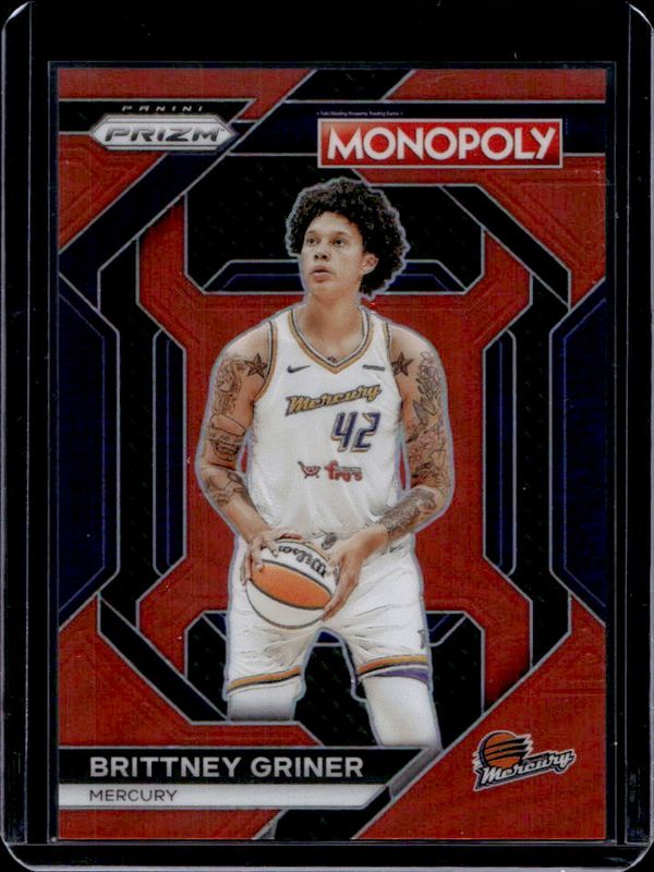 The Brittney Griner 2024 Prizm Monopoly WNBA #WNBA22 Insert - Red /99 card is 1 of 30 Brittney Griner's card variations in the 2024 Prizm Monopoly WNBA set being tracked by Sports Card Investor, including Insert, Insert - Boardwalk Blue Tiger Stripe, Insert - Deal, Insert - Dice, and Insert - Free Parking.