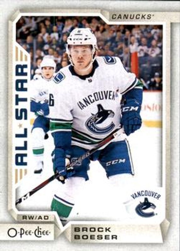 The Brock Boeser 2018 O-Pee-Chee #31 Base card is 1 of 15 Brock Boeser's card variations in the 2018 O-Pee-Chee set being tracked by Sports Card Investor, including Gold Border Glossy, Retro, Retro Blank Back, Retro No Name Scratch Off, and Silver.