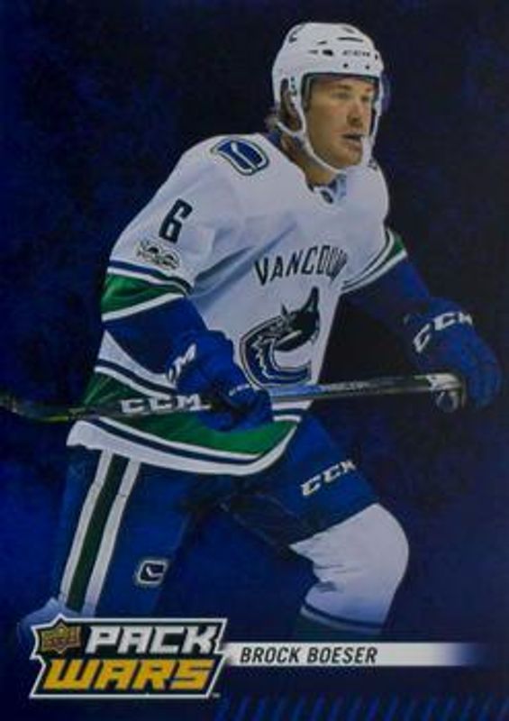 The Brock Boeser 2018 Upper Deck MVP #6 Pack Wars Player Achievements /10 card is 1 of 21 Brock Boeser's card variations in the 2018 Upper Deck MVP set being tracked by Sports Card Investor, including Base, Factory Set Blue, Green Script, Silver Script, and Gold Script /150.