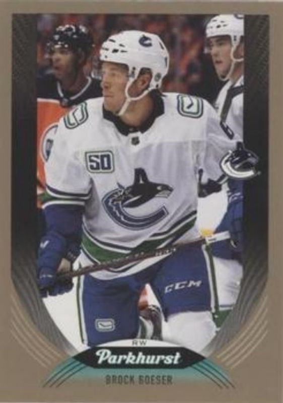 The Brock Boeser 2020 Upper Deck Parkhurst #255 Bronze card is 1 of 6 Brock Boeser's card variations in the 2020 Upper Deck Parkhurst set being tracked by Sports Card Investor, including Base, Gold, Silver, Gold Foil, and Emerald Ice Achievements /5.