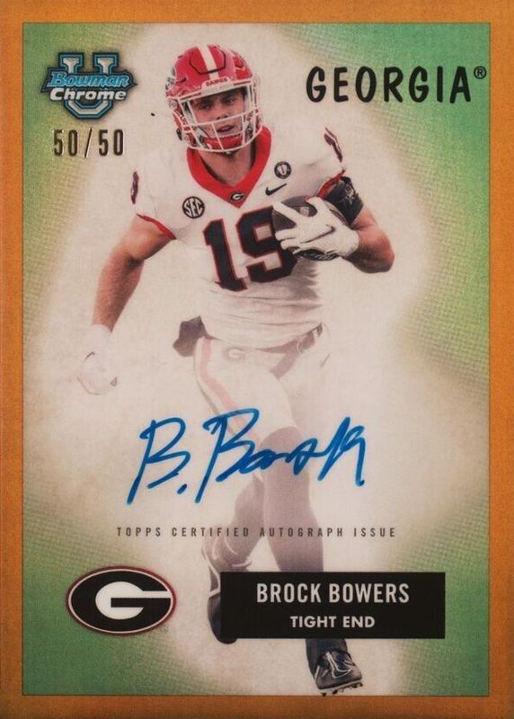 Brock Bowers 2023 Bowman U Chrome 1955 Retro GOLD ON CARD Auto /50 SSP Georgia