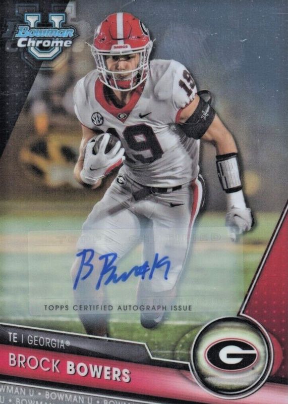 The Brock Bowers 2023 Bowman Chrome University #50 Prospect Auto card in Raw condition has moved down -$26.00 (-40.6%) in the last 30 days and was last sold for $38.00 .