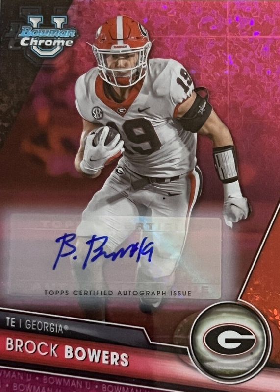 Brock Bowers Fuchsia Diamond Auto /150 2023 Bowman U Chrome #50 Georgia FREESHIP