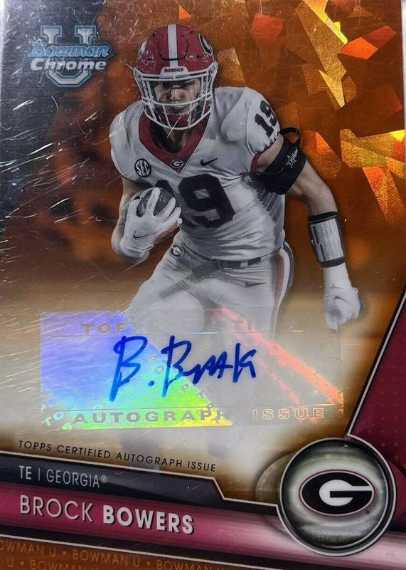 Brock Bowers 2023 Bowman Chrome U Sapphire Orange Auto #/25!! Georgia Raiders