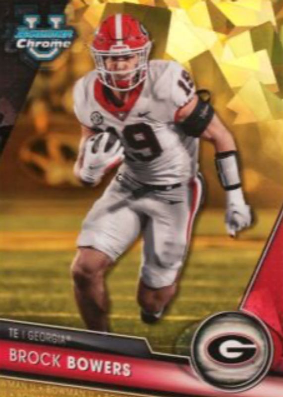 Brock Bowers Yellow Sapphire /75 2023 Bowman Chrome U University 2/75 Georgia