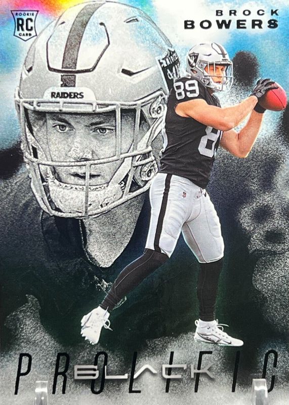 The Brock Bowers 2024 Black #PR-BBS Prolific /(SSP) Rookie card in Raw condition has not changed in price in the last 30 days and was last sold for $89.99 .