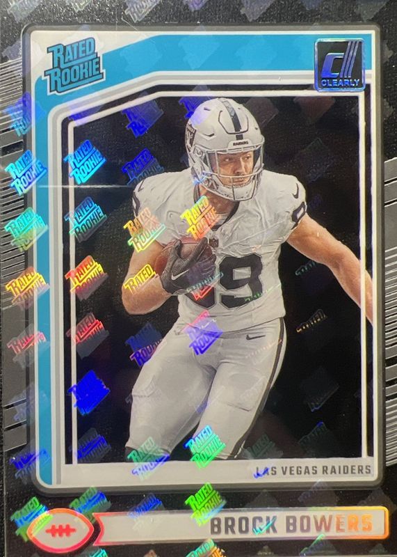 The Brock Bowers 2024 Clearly Donruss #57 Rated Rookie Logos card in Raw condition has not changed in price in the last 30 days and was last sold for $5.00 .