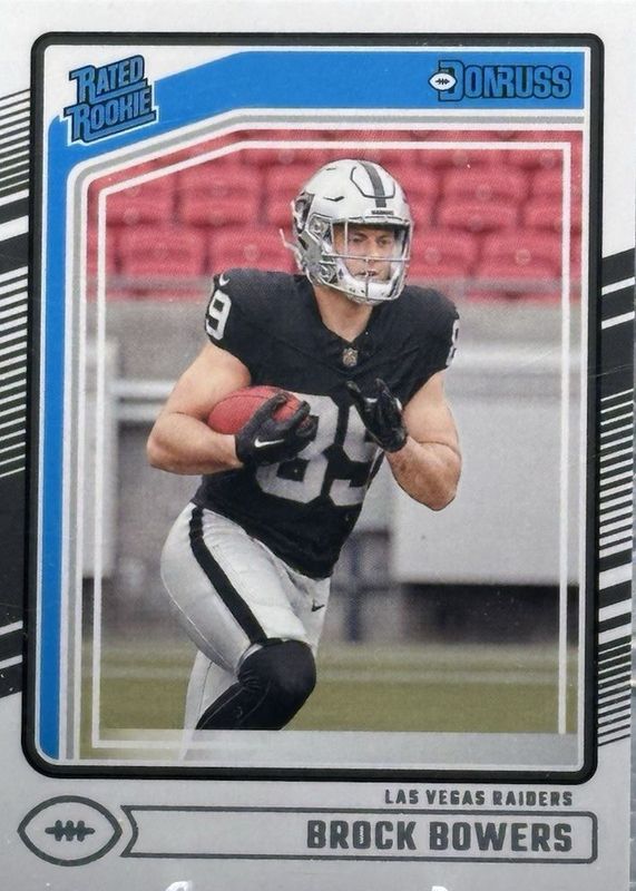 This card is 1 of 51 Brock Bowers' card variations in the 2024 Donruss set being tracked by Sports Card Investor, including Base, Canvas, Jersey Number (/89), No Name, and Optic Preview - Blue Scope.