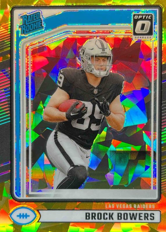 The Brock Bowers 2024 Donruss #394 Optic Preview - Gold Ice /10 Rookie card in Raw condition has not changed in price in the last 30 days and was last sold for $546.53 .